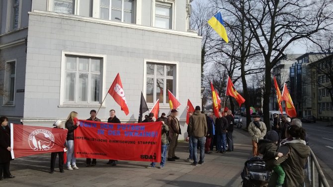 Vereinzelt kam es in Deutschland zu Kundgebungen und Demonstrationen gegen die Putschregierung (siehe Foto in Hamburg) oder gegen die Ablösung der Krim (in Berlin vom Berliner Euromaidan). traditionell ist Ostern ein Termin der Pazifisten und es bleibt spannend ob sich aus den Ostermärschen eine neue europäische Friedensbewegung entwickelt.
